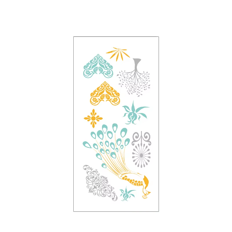 If you are looking for a way to express yourself with body art without committing to a permanent tattoo, you might be interested in our custom or wholesale high quality non-toxic waterproof women men body art flash metallic silver & gold temporary tattoo sticker. These stickers are easy to apply and remove, and they last for up to a week on your skin. They are made of safe and eco-friendly materials that do not irritate your skin or cause allergic reactions. You can choose from our wide range of designs or create your own with our custom service. Whether you want to add some sparkle to your outfit, make a statement, or have some fun with your friends, our temporary tattoo stickers are the perfect choice for you.