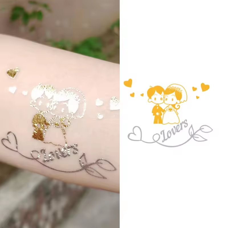 Gold foil temporary tattoos have become a popular fashion trend for those looking to add a touch of glamour and shine to their appearance without the permanence of traditional tattoos. These metallic designs are often used as accessories for special occasions, such as festivals, parties, or beach outings. The application of these tattoos is straightforward, involving a water transfer process that leaves the gold design on the skin. They are a fun and non-committal way to experiment with body art, often coming in a variety of patterns, from intricate mandalas to simple geometric shapes. Many options are available online, with sites like Etsy offering a wide range of designs, including botanical sets, metallic jewelry tattoos, and custom packs for events like bachelorette parties. The affordability and temporary nature of these tattoos make them an attractive option for those looking to accessorize for a single event or to try out a design before committing to a permanent tattoo. With proper care, these tattoos can last several days, making them a convenient option for extended wear during multi-day events. As with any product applied to the skin, it’s important to ensure that the materials used are safe and non-toxic, especially for those with sensitive skin. Overall, gold foil temporary tattoos are a versatile and stylish way to enhance one’s look with a touch of metallic flair.