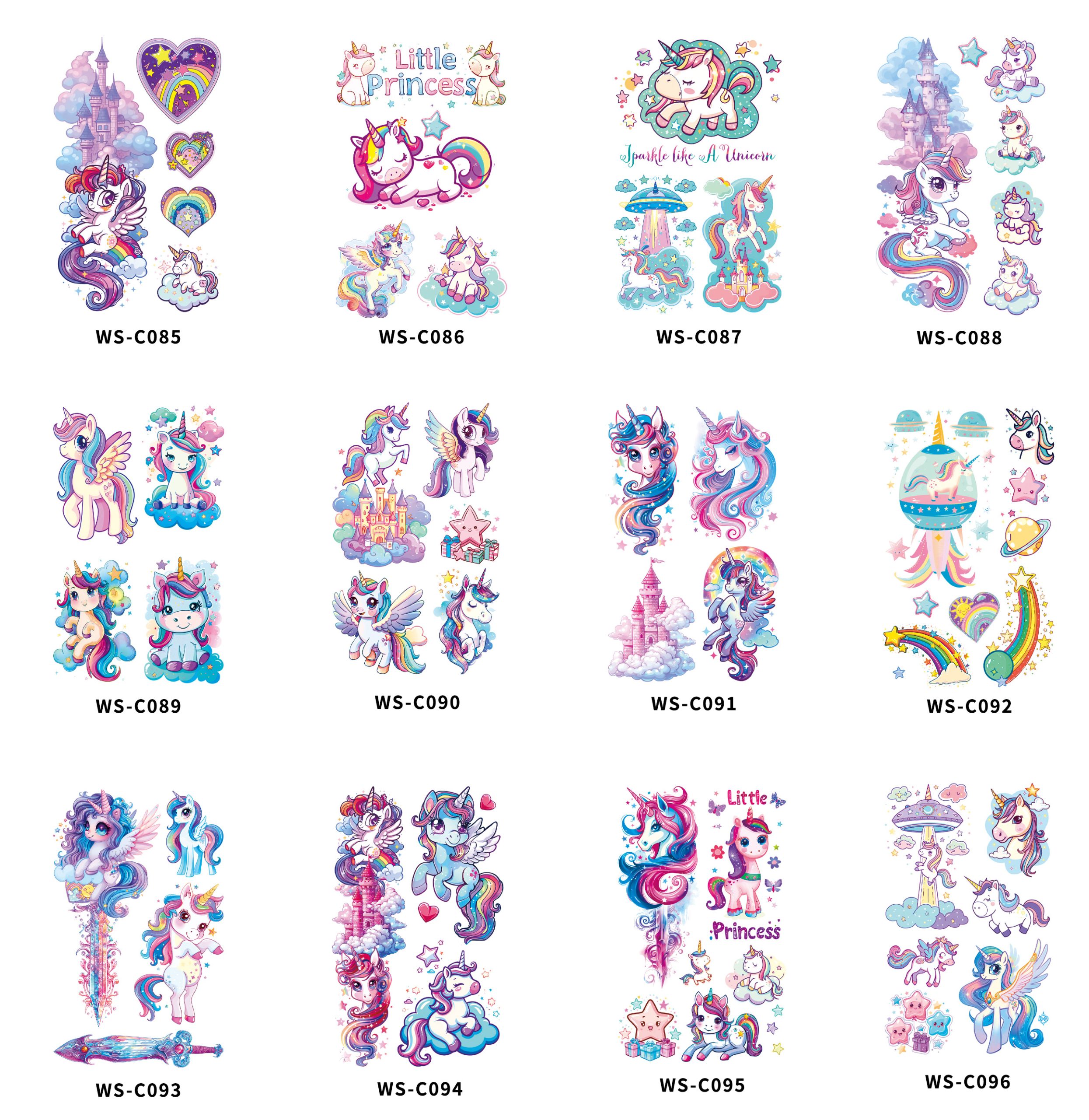 These temporary tattoos come in vibrant colors with sparkling glitter, featuring whimsical designs of unicorns and other enchanting motifs. They are skin-friendly, waterproof, and easy to apply, ensuring they can be worn to parties or during play without worry.