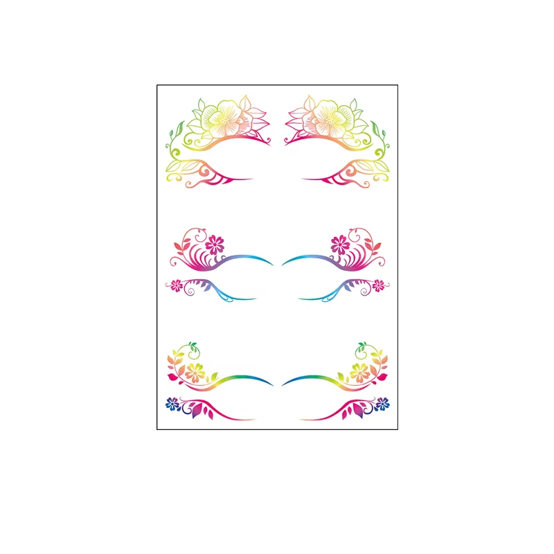 Eyeshadow face paint tattoo stickers are a creative and convenient makeup accessory that allows for quick and intricate eye makeup designs. These stickers come in a variety of patterns and colors, suitable for different occasions like Halloween, parties, or photo shoots. They are easy to apply, requiring only a bit of water to transfer the design onto the skin, and they can last for 3 to 6 days. Made from safe materials, they are suitable for all skin types and can be removed easily with cleansing oil or rubbing alcohol.