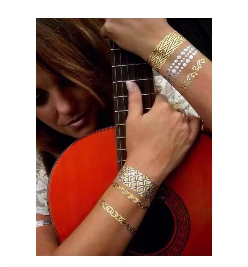 If you are looking for a way to express your personality, style, or mood without committing to a permanent tattoo, you might want to try our custom temporary tattoo stickers. These stickers are made of high-quality flash gold foil that is waterproof, durable, and easy to apply and remove. You can choose from our wide range of designs or create your own with our OEM printing service.