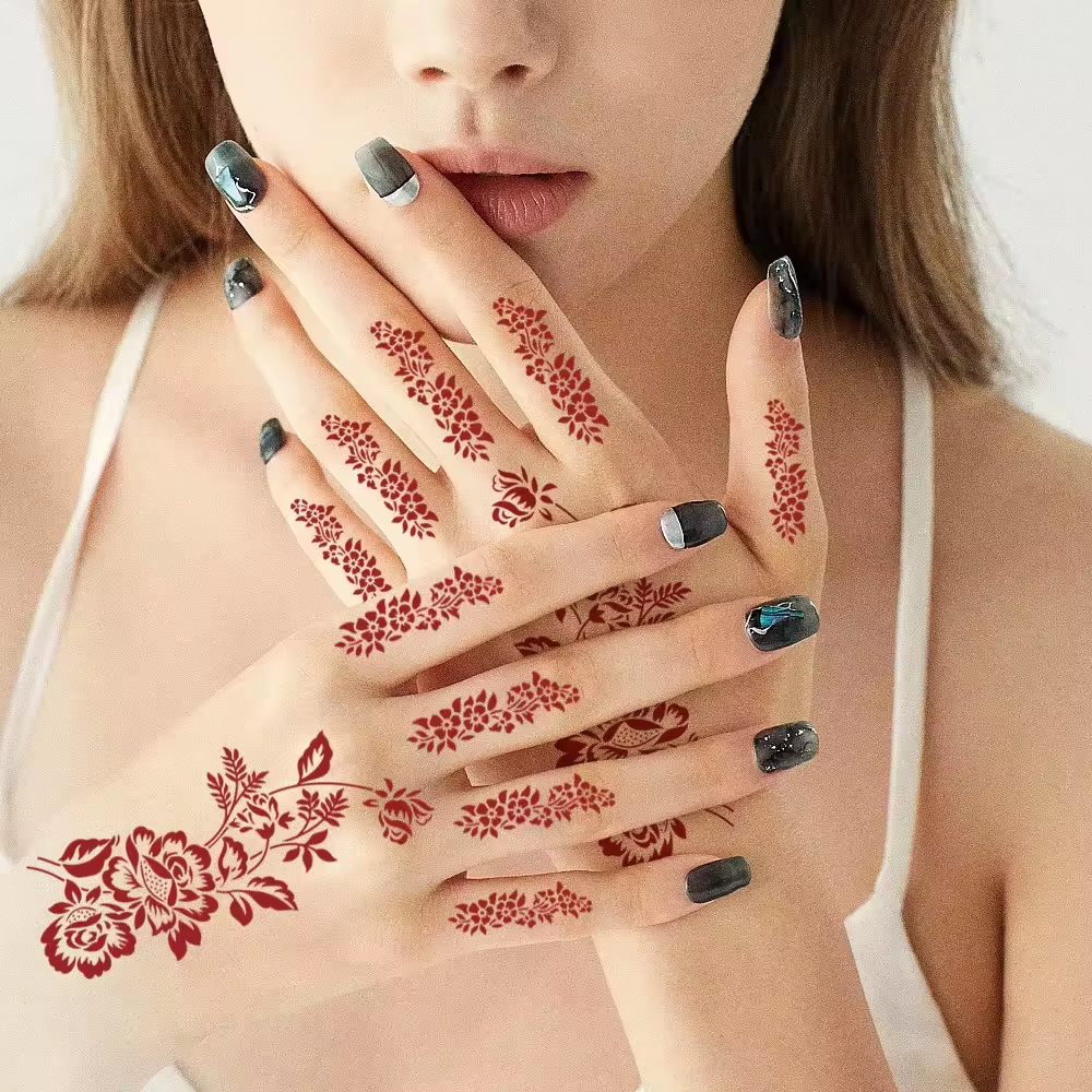If you are looking for a way to add some sparkle and glamour to your skin, you might want to try our henna temporary tattoos foil henna tattoo stickers. These are high-quality and easy-to-apply stickers that mimic the look of traditional henna tattoos, but with a shiny and modern twist. You can choose from a variety of designs, such as floral, geometric, mandala, or tribal patterns, and customize them according to your preferences.