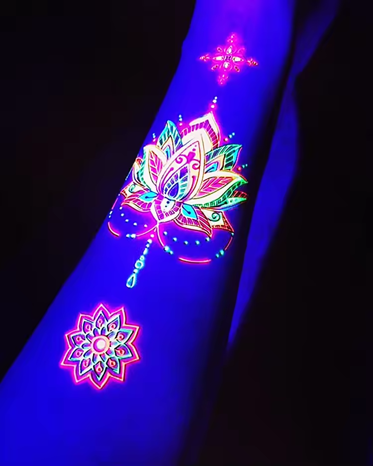 Glow in the Dark Party temporary tattoos are exciting body adornments that light up under UV light, adding a playful and luminous element to any celebration. These tattoos are easy to apply, waterproof, and can last for several nights, making them perfect for events like dance parties, clubs, or cosmic bowling. They come in a variety of designs, from tribal symbols to whimsical constellations, and are a hit for both kids and adults looking to brighten up the fun when the lights go outhttps://www.temporarytattoos.com/collections/glow-in-the-dark-temporary-tattoos.