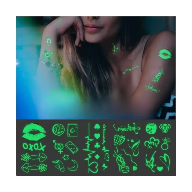 Music Festival Luminous Tattoo Stickers are designed to elevate the party experience with their vibrant glow under UV light. These temporary tattoos are perfect for music festivals, dance parties, and any nighttime event where you want to stand out. They’re waterproof, easy to apply, and come in a variety of designs that can include musical notes, instruments, or abstract patterns. Safe for the skin and lasting for several days, they ensure your look remains luminous and fun as you enjoy the festivities.