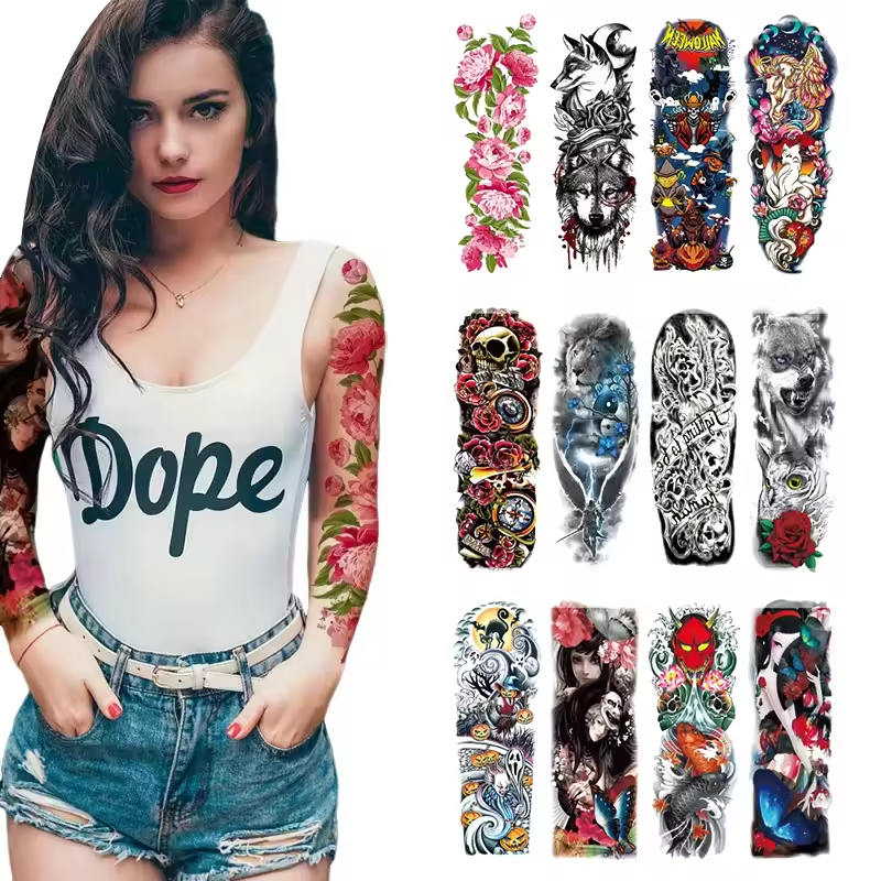 * Thank you for your interest in our tattoo stickers. Our tattoo stickers are designed to look realistic and last for a long time, but they are not the same as real tattoos. Real tattoos are permanent and involve injecting ink into the skin, while our tattoo stickers are temporary and adhere to the surface of the skin. Our tattoo stickers are safe, easy to apply and remove, and come in a variety of designs and colors. You can enjoy the look of a tattoo without the pain, commitment, or risk of infection.