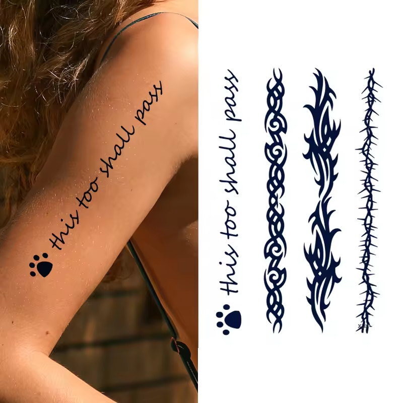 * Thank you for your interest in our tattoo stickers. Our tattoo stickers are designed to look realistic and last for a long time, but they are not the same as real tattoos. Real tattoos are permanent and involve injecting ink into the skin, while our tattoo stickers are temporary and adhere to the surface of the skin. Our tattoo stickers are safe, easy to apply and remove, and come in a variety of designs and colors. You can enjoy the look of a tattoo without the pain, commitment, or risk of infection.