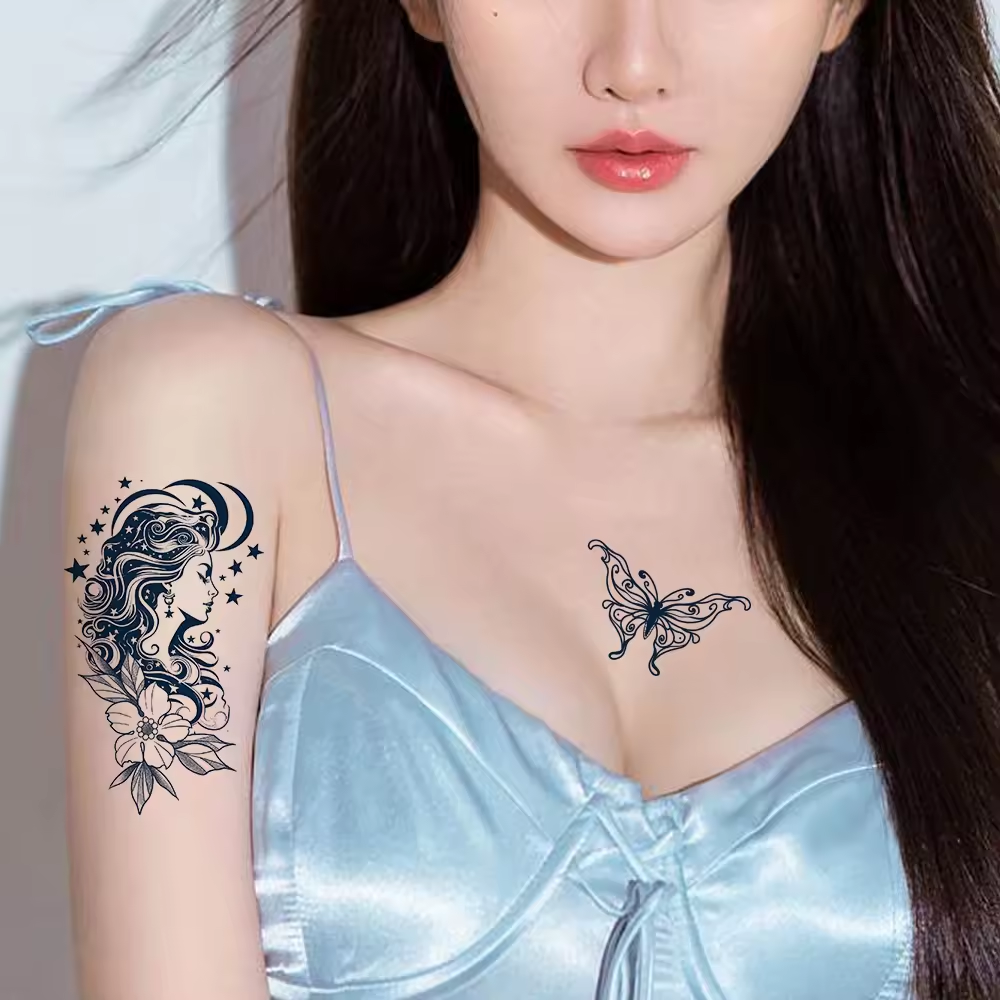 * Thank you for your interest in our tattoo stickers. Our tattoo stickers are designed to look realistic and last for a long time, but they are not the same as real tattoos. Real tattoos are permanent and involve injecting ink into the skin, while our tattoo stickers are temporary and adhere to the surface of the skin. Our tattoo stickers are safe, easy to apply and remove, and come in a variety of designs and colors. You can enjoy the look of a tattoo without the pain, commitment, or risk of infection.